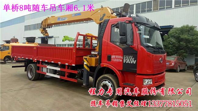 講了東風(fēng)T5隨車吊配8噸吊機(jī)6.1米貨箱,今天講另一款8噸解放單橋隨車吊車廂內(nèi)尺寸6.1米,用戶的選擇6.1米隨車吊空間,來(lái)介紹新產(chǎn)品.以前配8噸吊機(jī)車廂只能做到5.6米,如果做5.8米的貨箱就有點(diǎn)擠擠的.這款6.1米貨箱隨車吊拉鋼管呀拉集裝箱的首選.10.00R20 .八檔變速箱.大柴220馬力.