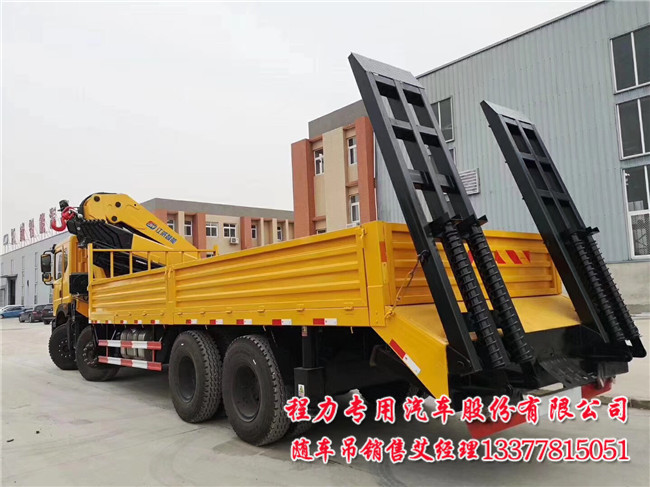 拉大型挖機華神T5前四后八隨車起重運輸車的平板生產(chǎn)標準:平板車廂的底板是8個厚的鋼板,底板下面用21#套10#的方筒,可以手動或液壓申縮,整車價格也不同,后面的爬梯可手動可液壓,說實話,百分之80的都是手動,不易壞,好維修.