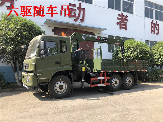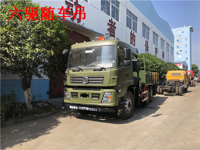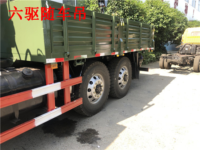 6X6東風原廠六驅(qū)隨車吊配吊噸位:按公司配5噸6.3噸7噸整車自重不超重,因整車自重輕,是單層大梁,所以配不了8噸吊機。