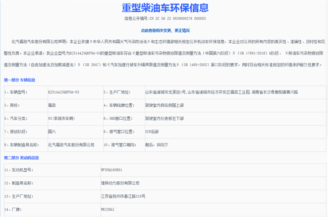 生產(chǎn)企業(yè) 北汽福田汽車股份有限公司