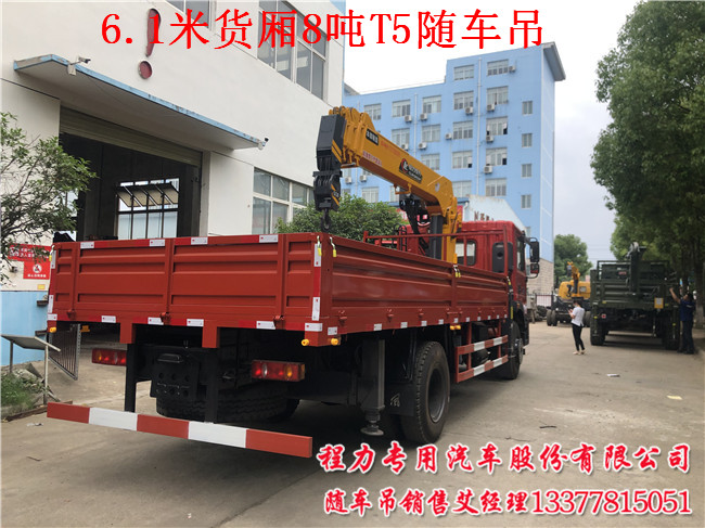 上海技景遙控器(國內(nèi)一線品牌)與T5單排隨車吊配8噸吊貨廂6.1米內(nèi)尺寸:先說說用戶為什么要購這款車子,因這款比普通同款車子要貴好多(5.6米貨廂),用戶購車?yán)b箱首選,現(xiàn)在有些地方規(guī)定拉貨不能超出車廂,所以6米集裝箱正好。拉工地鋼管+6米長加上自卸車廂更方便。還有就是用戶購車要多拉貨,車廂就要長點并且又不超公告規(guī)定T5隨車吊配8噸吊機6.1米貨相并且200大馬力。