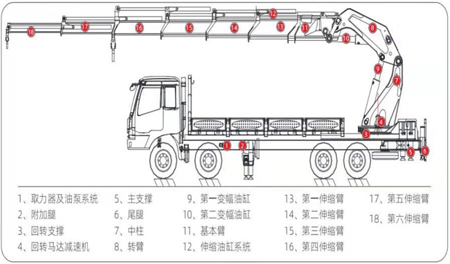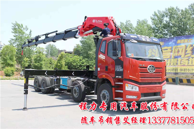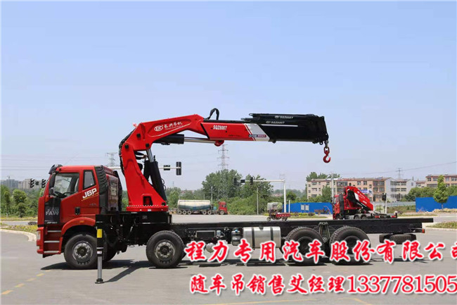 前四后八解放國六隨車吊可選配吊機噸位變幅SQZ3306型(16噸),折臂吊機SQZ4006(或SQZ4007)型(20噸),折臂吊機SQZ5007型(25噸),折臂吊機SQZ6007型(30噸),折臂吊機SQZ7007型(35噸),折臂吊機SQZ8007型(40噸),折臂吊機,可選裝各類輔具1.卷揚機 2.夾竹器 3.抱磚器4.夾鐵器 5.移位腿 6.遙控器。