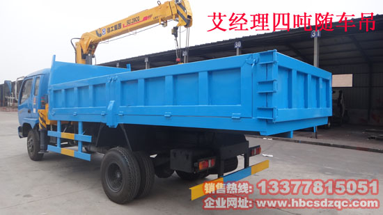 四噸隨車吊--東風(fēng)4噸隨車起重運(yùn)輸車,這里指的是東風(fēng)勁卡隨車吊,用戶要想買四噸隨車吊,只要在百度上輸入4噸隨車吊我的網(wǎng)站就排在第四位,就可以了解更多的隨車吊參數(shù),這款四噸隨車吊是朝柴120馬力,大廂有4.8 \4.55米兩款,825-16輪胎,由楚勝湖北龍晨特種汽車裝備有限公司改裝,隨車吊價(jià)格實(shí)惠,受全國用戶的歡迎。如:4噸隨車吊在百度里輸入,我的網(wǎng)站就在首頁出現(xiàn),圖片: