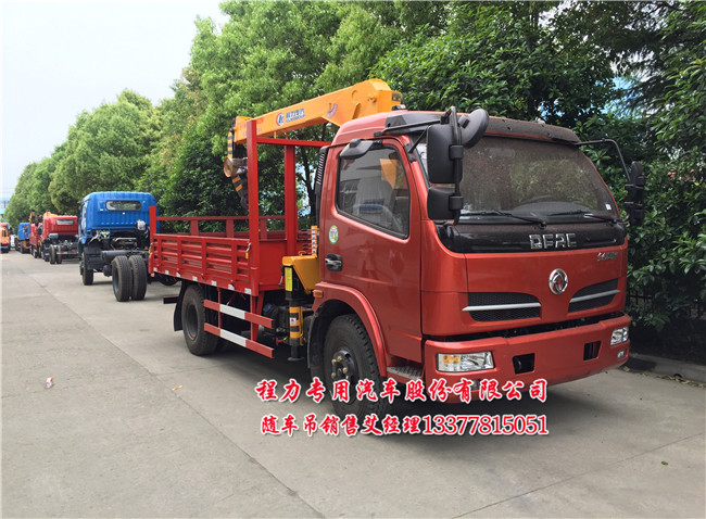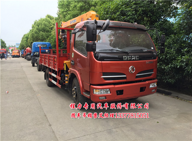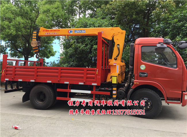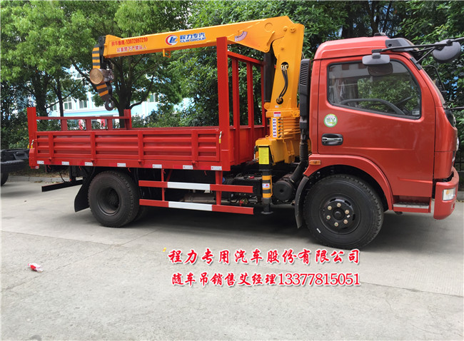 藍(lán)牌東風(fēng)福瑞卡隨車吊配2噸三節(jié)直臂的主要參數(shù):SQ2SK2Q三節(jié)折臂吊機(jī)(舉升高度9米 ,工作半徑7 .7米) 最大起重量:2噸,最小起重量度0.255噸