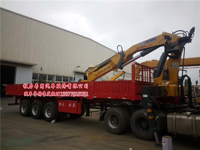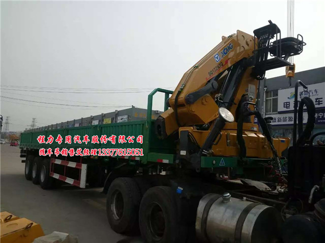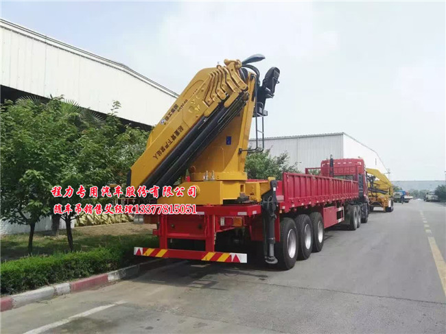 折臂半掛吊25噸20噸18噸16噸 12噸半掛吊-隨車起重運輸半掛車就是半掛的前端或未端裝一想對應的吊機,如果用戶一輛牽引頭,只買一個掛上帶吊就可以了,掛上帶吊比牽引頭帶吊實惠;牽引頭帶吊現(xiàn)在直有直臂吊機,但成本高很多,用戶有不清楚的直接打圖片上的電話咨詢。隨車起重運輸半掛車(半掛吊)前置后置都行,吊機配大配小按用戶所吊貨物的大小來配,,歡迎全國的用戶來公司看車訂車。隨車起重運輸半掛車符合國家的法律法規(guī),有正常的運營手續(xù),可放心在路上運營