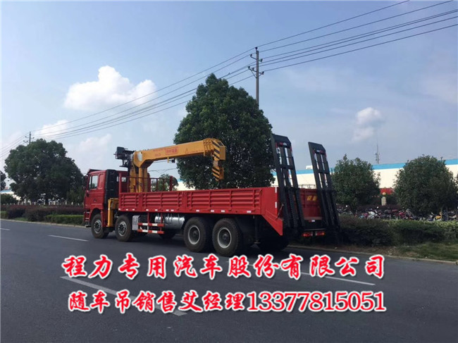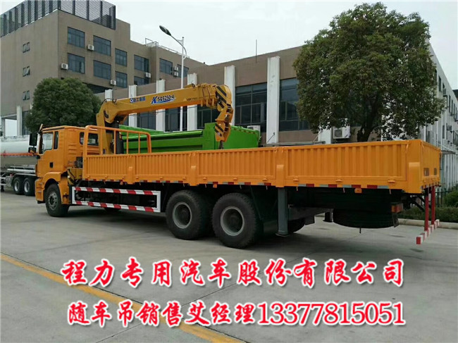 陜汽牌SX5251JSQMP5后雙橋軒德隨車起重運輸車:軒德3系,TJG161法士特9檔,斷氣剎,帶方向助力,YC6A270-50 遠程油門,氣囊座椅,280*(8+6+6)12000×2500×3700 箱體尺寸: 8400*2300*600 配12噸10噸吊機。