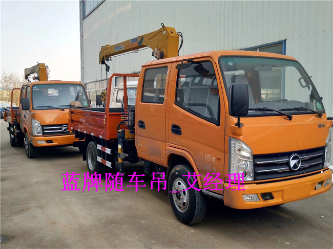 凱馬_東風_江鈴雙排藍牌隨車吊都可以加裝自卸功能,灑水罐可吊上吊下,工作斗。車廂可以加固成拉電桿或用戶想要的車廂,只有用戶想不到的,沒有我們廠家做不到的。