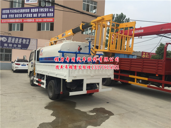 東風(fēng)福瑞卡藍(lán)牌多功能隨車(chē)吊工作斗與灑水罐,加裝多功能,隨車(chē)吊價(jià)格就會(huì)增加。