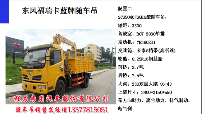 東風(fēng)福瑞卡藍(lán)牌隨車(chē)起重運(yùn)輸車(chē)配6.3噸5噸4噸3.2噸是一款最常用車(chē)型,吊機(jī)配的越大,整車(chē)自卸超的越多,上戶一定要找好了再購(gòu)車(chē)。東風(fēng)福瑞卡藍(lán)牌隨車(chē)吊底盤(pán)很扎實(shí),并且是鋼絲胎825R16,具體參數(shù)如下: