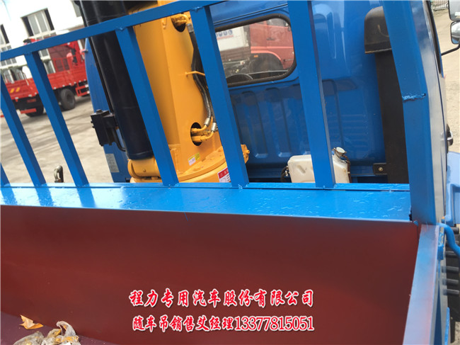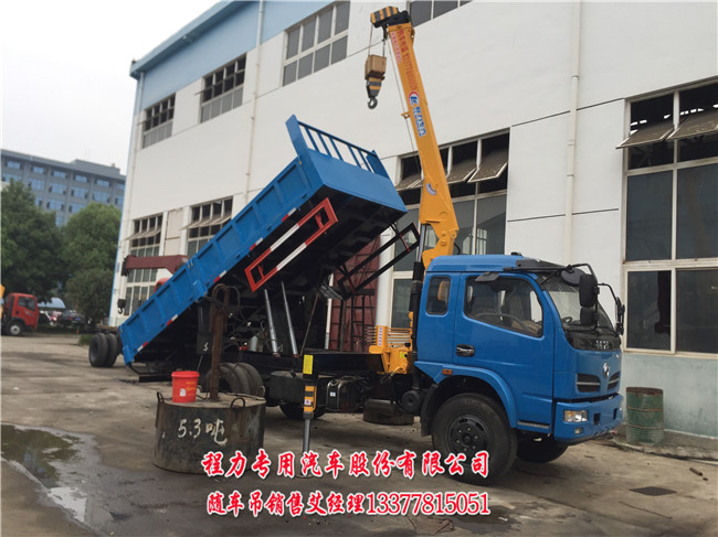 東風(fēng)福端卡多功能隨車吊帶自卸最大可以配7噸吊機,最小可以配2噸吊機,一般配5噸吊機最多,5噸吊機參數(shù):SQ5K2Q噸三節(jié)直臂吊機(舉升高度9.8米 ,工作半徑8.5米) 最大起重量是5T,最小起重量是1.05噸。