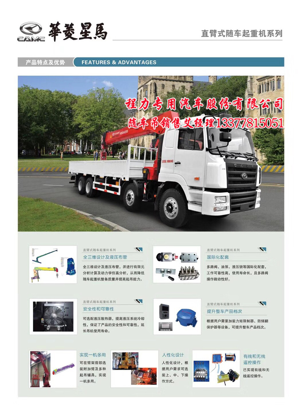 兩軸/小三軸華菱隨車吊后雙橋華菱隨車吊華菱前四后八隨車吊及華菱隨車式起重牽引運輸車配6.3噸8噸10噸12噸4噸16噸吊機,隨車起重運輸車由安徽華菱汽車有限公司生產(chǎn),四款專用底盤,兩軸華菱隨車吊發(fā)動機160馬力,華菱小三軸隨車吊發(fā)動機245馬力/后雙橋又叫后八輪290馬力/前四后八華菱隨車吊發(fā)動機300馬力,