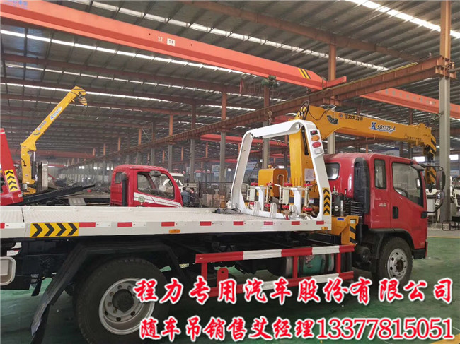 SCS5166TQZCA 解放平板一拖二清障車帶吊配置:解放虎V黃牌隨車吊帶清障吊機可以配5噸四噸3.2噸,/電動玻璃,在廠空調(diào),825鋼絲胎,大梁加厚外包,軸距(mm)4400.