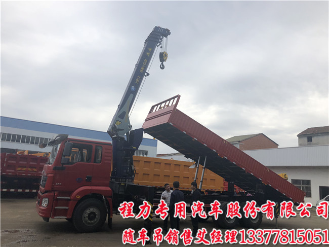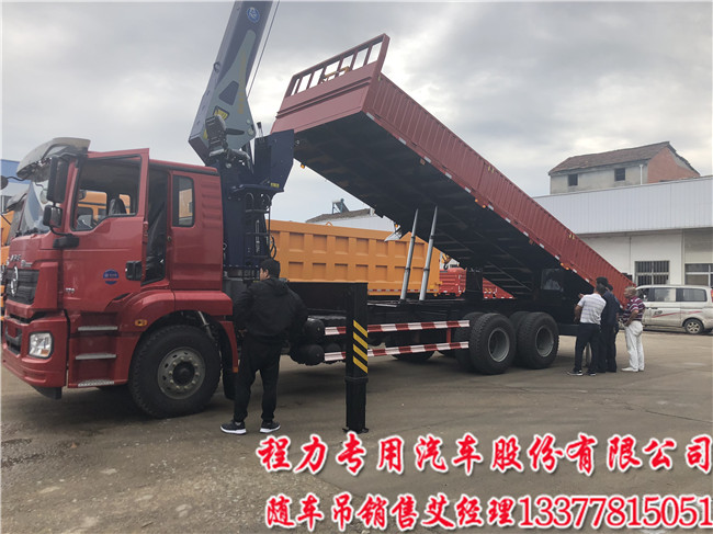 陜汽德龍后八輪隨車吊自卸:該車僅在底盤軸距為5775+1400(mm)上改裝.隨底盤選裝同系列駕駛室,面罩,遮陽罩,保險杠及后組合燈具.選裝貨箱欄板外觀.可選裝直臂式或折臂式起重機.選裝隨車起重機作業(yè)時四支腿或前部兩支腿及起重機操作座椅位置.起重機型號/最大起升載荷(kg)/吊機重量(kg)對應(yīng)關(guān)系分別為:1.直臂
