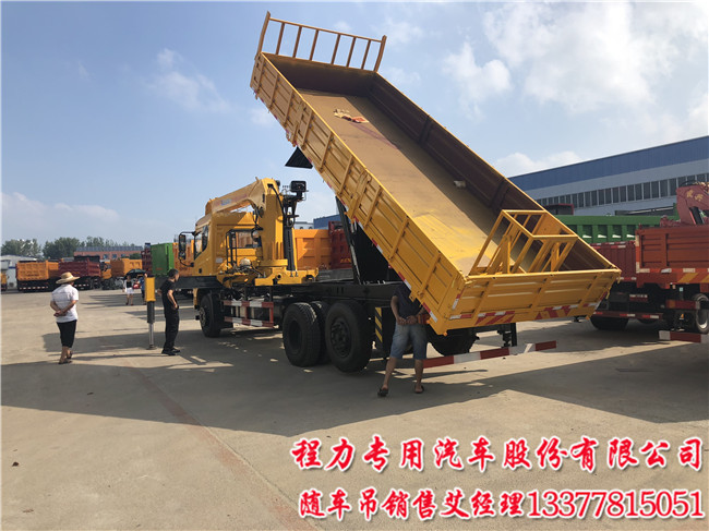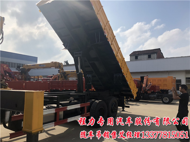 三環(huán)昊龍?zhí)嵘龢?a href="http://www.dubeiwang.com/" target="_blank">隨車吊車廂達到6.5米,加裝了多功能隨車吊自卸,自卸頂有中置雙頂及中置一個臥頂.中置一個臥頂成本要高一些.更穩(wěn)一些自卸時.
