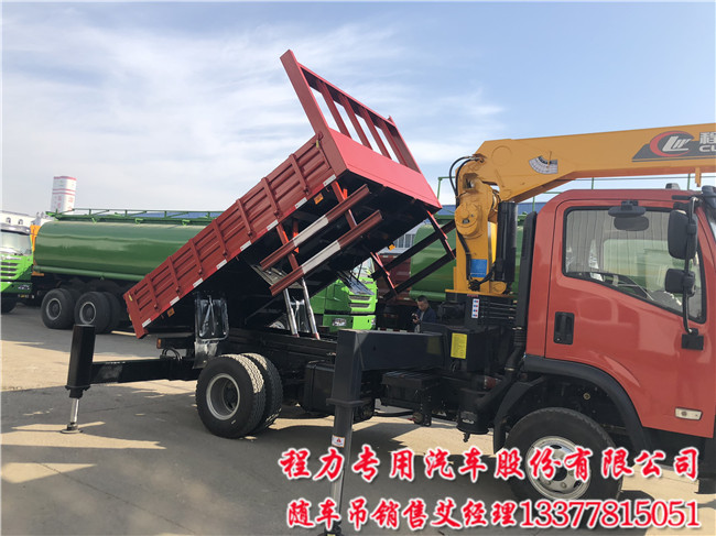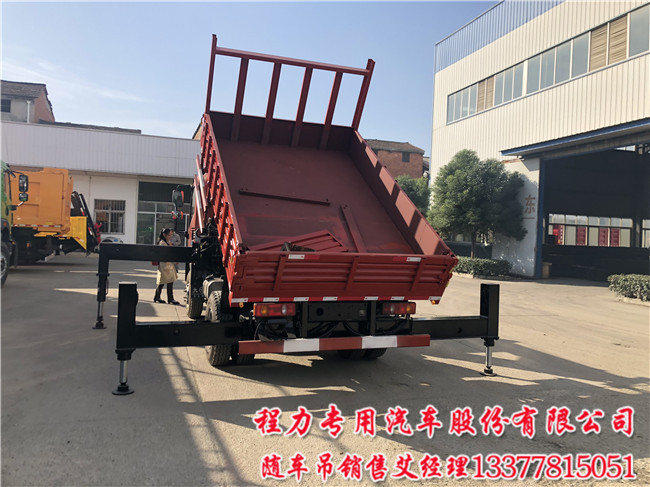 大運(yùn)藍(lán)牌隨車吊帶自卸_5(五)四節(jié)直臂_170馬力云內(nèi)_包牌:先說說多功能自卸隨車起重運(yùn)輸車,就是在車廂下面加中置雙頂,當(dāng)然車廂按工程車生產(chǎn),也就是說車廂要加固,邊三底四,這款多功能隨車吊發(fā)動(dòng)機(jī)有三款供選,玉柴120馬力與云內(nèi)170馬力和130馬力,選擇的空間大.可選裝備有灑水車功能的灑水罐.可吊上吊下,方便,做到一車多用回本快.