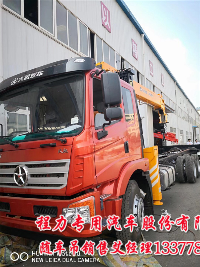 大運(yùn)后雙橋隨車(chē)吊240馬力與270馬力玉柴:11.00R20鋼絲胎(無(wú)備胎),原裝取力器,節(jié)油開(kāi)關(guān),遠(yuǎn)程油門(mén)。2250風(fēng)馳駕駛室,陜齒大九檔變速箱,5噸前橋,10噸雙后橋,氣囊座椅,液壓翻轉(zhuǎn),300*(8+8+6)原廠通體三層大梁,目前只有國(guó)五發(fā)動(dòng)機(jī),大運(yùn)后雙橋隨車(chē)吊價(jià)格跟吊機(jī)噸位大小與車(chē)廂要求有關(guān),
