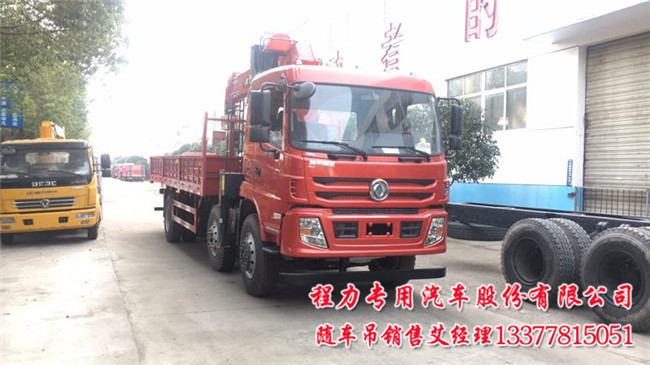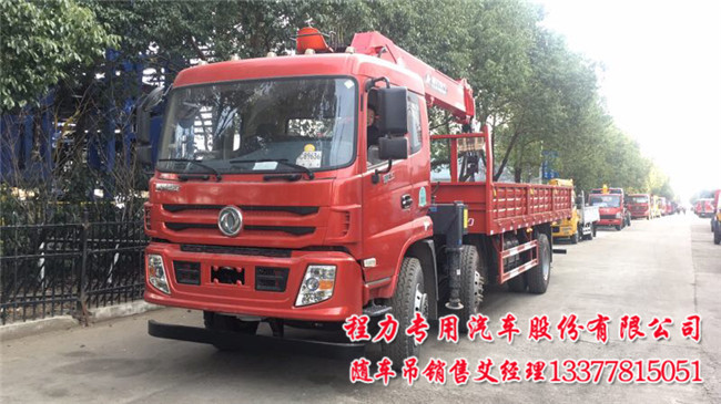 東風御虎前四后四隨車吊配置:法士特大8檔變速箱帶原廠取力器,前橋5T,后橋10T速比5.571,1100鋼絲胎,出廠ABS下防護.吊機按用戶要求配10噸12噸14噸,300幅面局部三層加強車架.