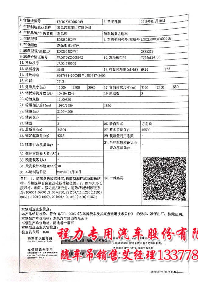東風牌EQ5250JSQFV型隨車起重運輸車