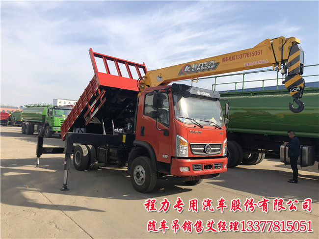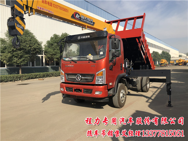 大運(yùn)藍(lán)牌隨車吊帶自卸由程力生產(chǎn),專業(yè)廠家生產(chǎn)中置自卸雙頂,825鋼絲輪胎,232雙層大梁專用隨車起重運(yùn)輸車底盤,帶副變速五檔,很適合在鄉(xiāng)村公路及市區(qū)行駛.多功能隨車吊帶自卸用戶又叫翻斗車帶吊,由國五隨車吊專用底盤加相對應(yīng)吊機(jī),自卸車廂及液壓系統(tǒng).一般用后翻中頂,但少用戶要側(cè)翻(6米至8.5米),側(cè)翻自卸車廂成本高,