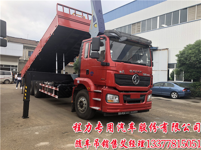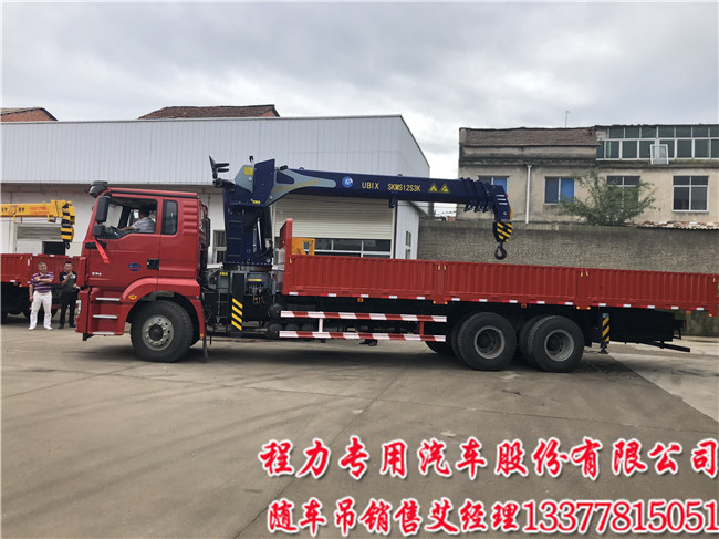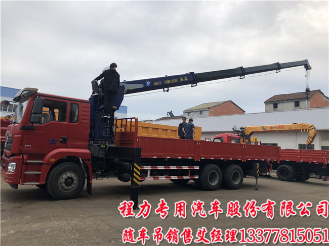 陜汽軒德后雙橋隨車吊PK陜汽德龍后雙橋隨車吊:后雙橋隨車吊一般配12噸吊機,工用半徑在15.3米的程力吊機四節(jié)加長臂,在一節(jié)不申時吊12噸貨,大臂全申完時吊1噸左右.玉柴陜汽軒德后雙橋國五隨車吊配置:軒德3系,TJG161法士特9檔,后橋13噸,斷氣剎,帶方向助力,ABS,尿素罐,電動車窗中控鎖,遠(yuǎn)程油門,氣囊座椅,280*(8+6+6)局部三層大架?梢约友b多功能隨車吊帶平板運輸車.