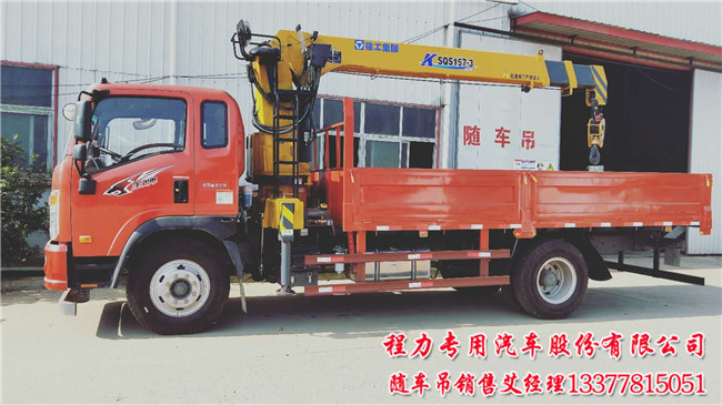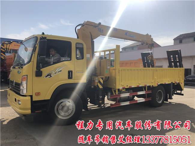 重汽王牌隨車吊帶平板運(yùn)輸車配6.3噸吊5噸吊