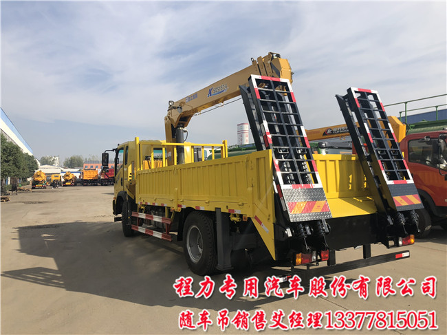 重汽王牌隨車吊帶平板運(yùn)輸車加裝平板運(yùn)輸拉挖機(jī)或普通車廂