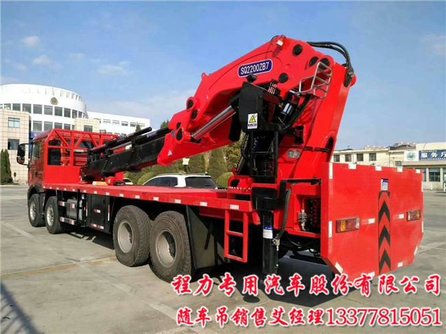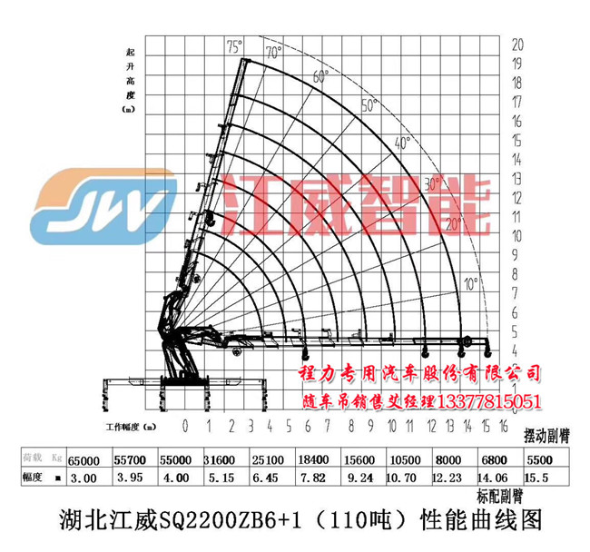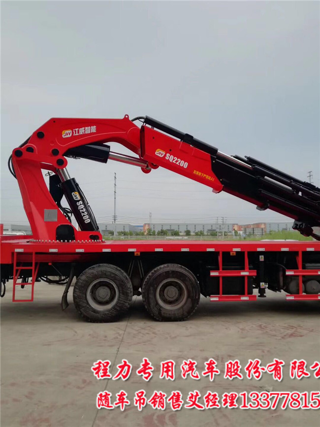 3米吊65噸55噸全折隨車吊前四后八(2200型)主要性能:FXB5430TQZHW5這里是指吊機(jī)吊機(jī)參數(shù).6節(jié)申縮臂加一節(jié)手動臂.臂長15.5米,舉升高度為18.5米,起重力矩(KN.M)2200;在3米吊6.5噸起重量.額定工作壓力(Mpo)30.支腿跨度(m)縮回2500-8100申出,安裝空間  (mm)2350.光吊機(jī)自重為17噸.額定系統(tǒng)流量(L/min)130.回轉(zhuǎn)角度(°)全回轉(zhuǎn)360°.以上是對110噸吊機(jī)講解,對江威這款全折2200吊機(jī)有所明白.