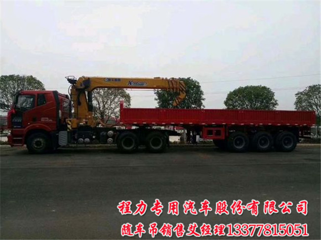 可配38噸30噸25噸20噸16噸華菱陜汽解放牽引頭隨車吊吊配直臂還是配折臂好(半掛帶吊可前置后置及中置_):華菱陜汽牽引頭帶吊公告配折臂,解放牽引頭帶吊可配折臂也可配直臂,有的用戶要購車時,不知是配折臂還是配直臂好,這個要跟直與折吊臂的優(yōu)與缺點來介紹,直臂起重量大,吊臂工用半徑相對應的要長價格實惠;而折臂操作難度大些,油缸多,維修費用大,起重量輕.