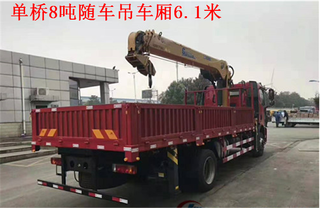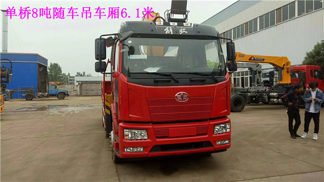 8噸單橋車廂6.1米解放隨車吊配置:單排駕駛室 ,配任何品牌8噸吊機(jī),徐工牌XZJ5182JSQJ5型隨車起重運(yùn)輸車貨廂尺寸(mm)6150×2450×600,整備質(zhì)量(Kg)11500.額定載質(zhì)量(Kg)6305.1000鋼絲胎,八檔變速箱.發(fā)動(dòng)機(jī)型號(hào)CA6DH1-22E5.中控鎖.帶隨車吊專用取力器及遠(yuǎn)程油門。