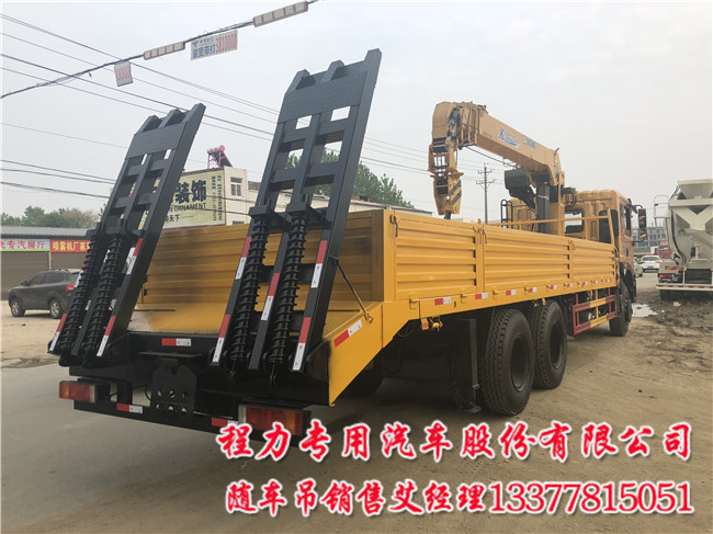12噸拉挖機后雙橋隨車吊的平板要求嚴(yán)格_申縮到三米