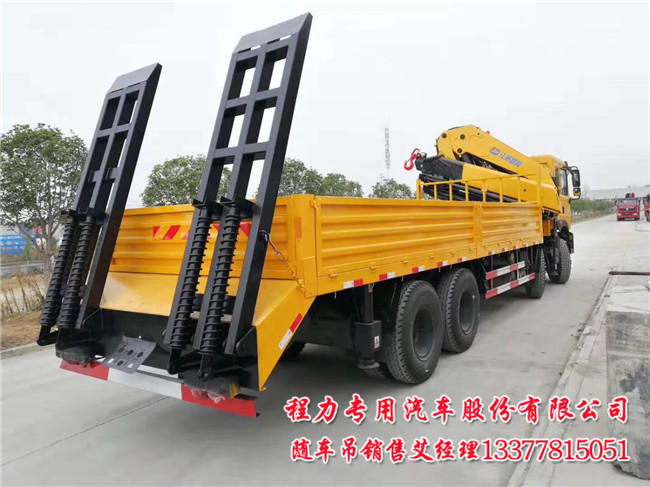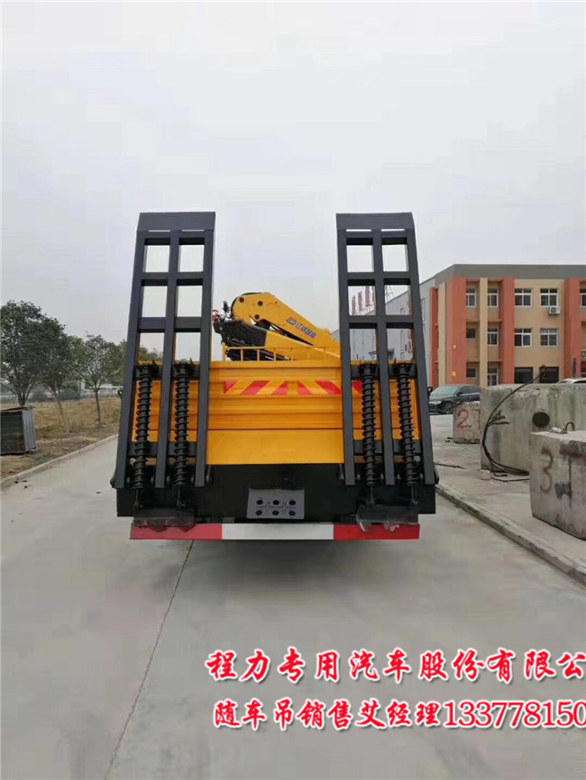 拉大型挖機華神T5前四后八隨車起重運輸車的平板生產(chǎn)標準:平板車廂的底板是8個厚的鋼板,底板下面用21#套10#的方筒,可以手動或液壓申縮,整車價格也不同,后面的爬梯可手動可液壓,說實話,百分之80的都是手動,不易壞,好維修.
