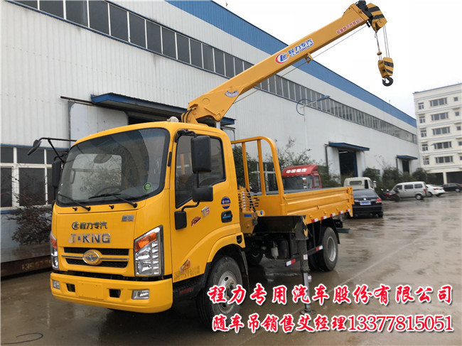 唐駿藍牌隨車吊的吊機可配大配小,吊機品牌也不一樣.有的用戶是這樣配的,一樣能賺錢,買一臺二線品牌吊機-程力專汽,以后不打算處理,一直用到報廢,程力專汽吊機是我公司自己生產,經濟實用.售后快又方便好操作.