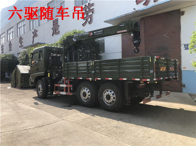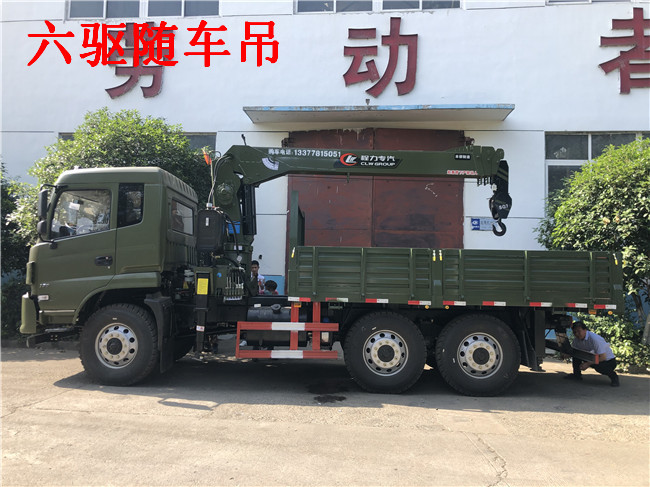 6X6東風原廠六驅(qū)隨車吊配吊噸位:按公司配5噸6.3噸7噸整車自重不超重,因整車自重輕,是單層大梁,所以配不了8噸吊機。