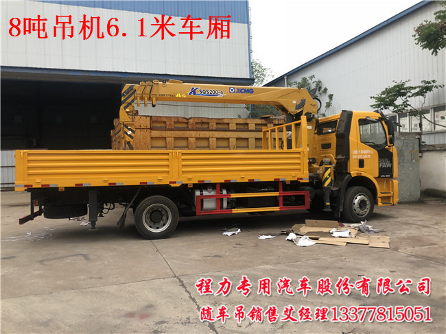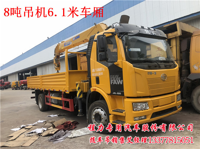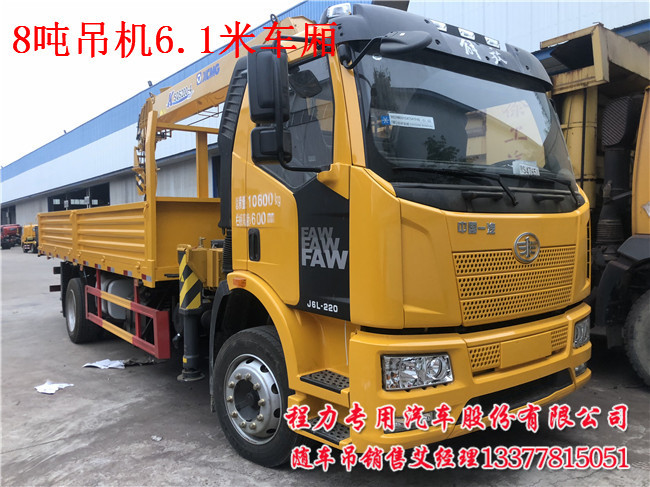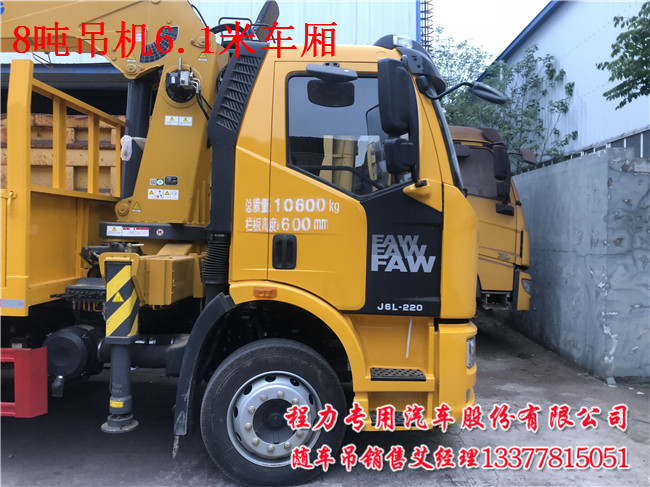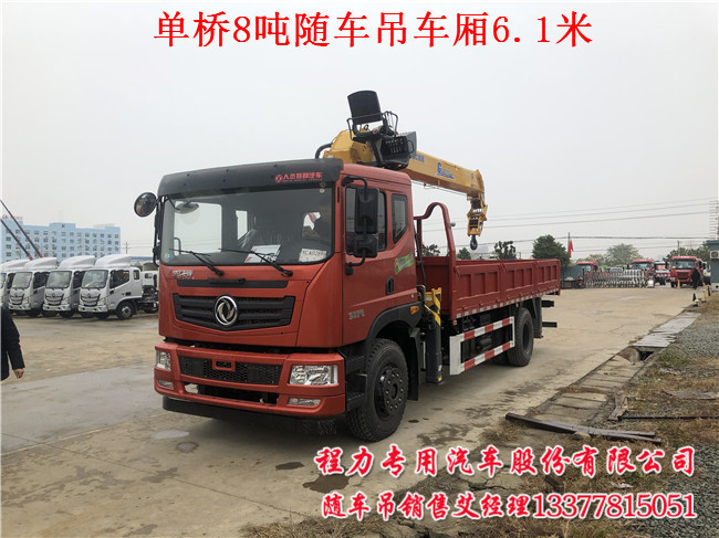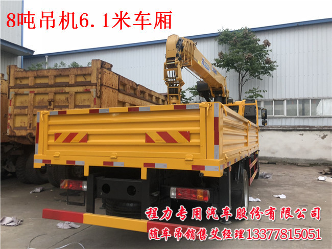6.1米車廂單橋解放8噸隨車吊配置與價格:220馬力大,8檔變速箱,10.00R20胎.三層大梁,空調(diào),電動玻璃,新發(fā)規(guī)。配8噸程力專汽吊機(jī)價格在27萬左右。 6.1米車廂單橋東風(fēng)T58噸隨車吊配置與價格:200馬力四缸機(jī),法士特小八檔,300大梁三層,5100軸距,前5T后10T,1000R鋼絲胎,7258新規(guī),配8噸程力專汽吊機(jī)價格在26萬左右。