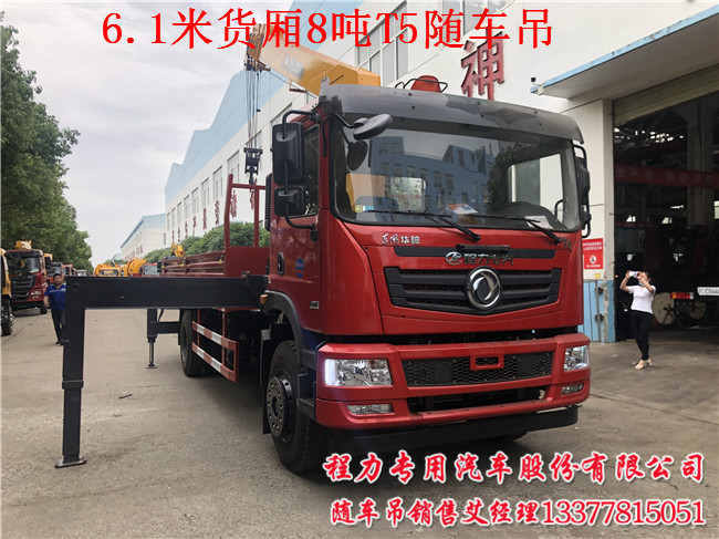 上海技景遙控器(國內(nèi)一線品牌)與T5單排隨車吊配8噸吊貨廂6.1米內(nèi)尺寸:先說說用戶為什么要購這款車子,因這款比普通同款車子要貴好多(5.6米貨廂),用戶購車?yán)b箱首選,現(xiàn)在有些地方規(guī)定拉貨不能超出車廂,所以6米集裝箱正好。拉工地鋼管+6米長加上自卸車廂更方便。還有就是用戶購車要多拉貨,車廂就要長點并且又不超公告規(guī)定T5隨車吊配8噸吊機6.1米貨相并且200大馬力。