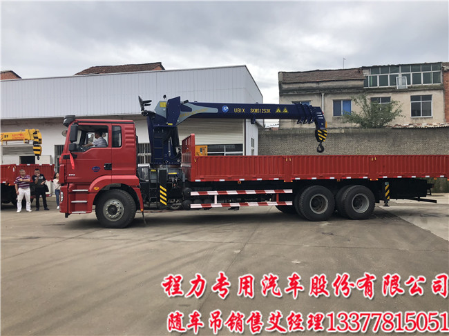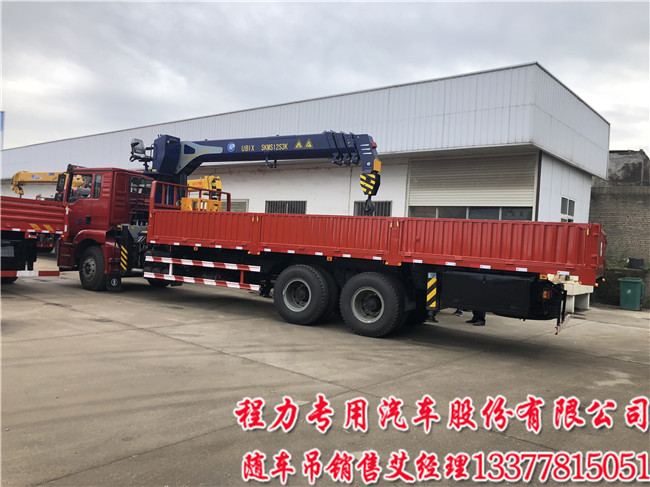 陜汽軒德后雙橋隨車吊可拉挖機_YC6A270-50_9檔帶高低檔這款多功能隨車吊很多用戶還不知,我來講講這款車子的配置:陜汽軒德,玉柴270馬力,法士特9檔帶高低檔,8.3米平板,1100鋼絲胎300的大梁,有空調(diào),ABS,斷汽剎.吊機有配直臂或折臂10噸12噸吊機.
