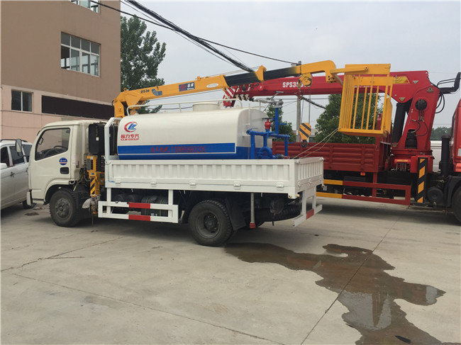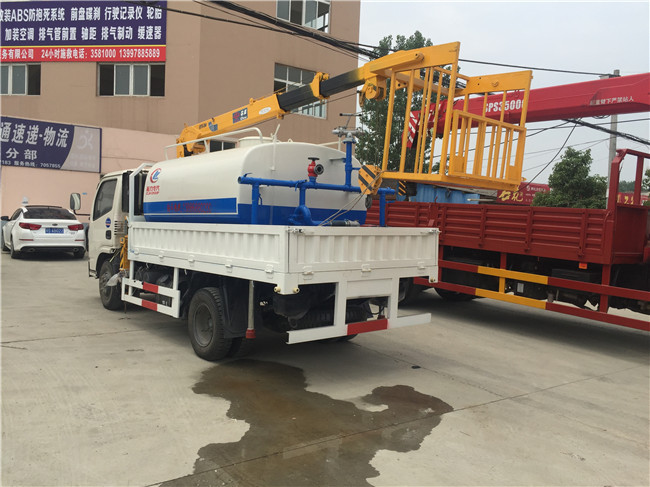 藍牌隨車吊吊臂頂端加裝一個吊藍,主要用于給樹修剪枝,安裝廣告牌,修路燈,你加裝吊藍主要是干什么.吊藍成本價是1000元,所以來正廠家訂車就是按成本價格給全國用戶.車廂大小不同,水罐大小可改.來電咨詢.