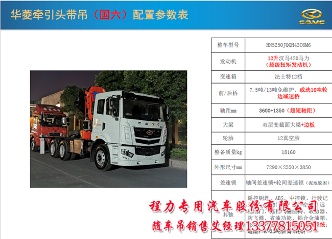 國(guó)六華菱廠家介紹:14噸16噸18噸國(guó)六前四后八隨車吊配置:AH5310華菱,國(guó)六漢馬400馬力,法士特12檔,高強(qiáng)度變截面大梁,前橋7.5噸,后橋13噸,11.00R20鋼絲胎,原廠空調(diào),高檔豪華氣囊座椅,多功能方向盤,取力器,遠(yuǎn)程油門,節(jié)油開(kāi)關(guān)。華菱重卡新款平頂新內(nèi)飾.漢馬390馬力.