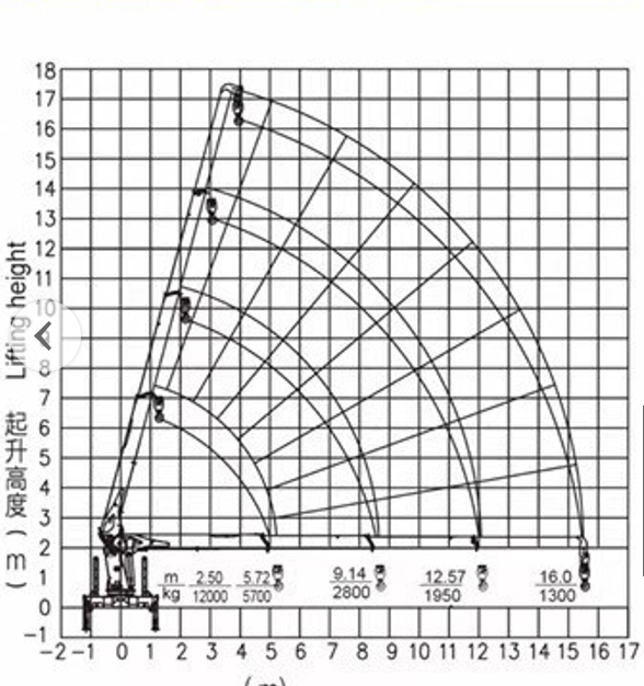 主要介紹D3后雙橋隨車吊配徐工12噸G系-M系-K系參數(shù):SQS12噸徐工G系大臂長(zhǎng)16米,在2.5米吊12噸;3.5米吊9.1噸;5.5米吊5.4噸;7.5米吊4.3噸;9.5米吊3.1噸;11米吊2.4噸;13.5米吊1.7噸;15米吊1.噸;16米吊1.3噸;M系少1.5米,K系少1.5米。