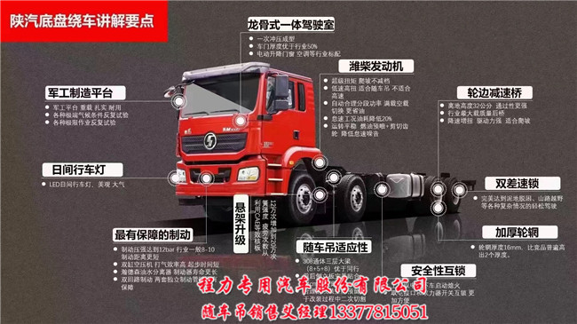 徐工16噸陜汽德龍前四后八隨車吊及G系16噸吊機參數(shù),先講講陜汽隨車吊前四后八專用底盤的優(yōu)點:從大梁:300mm三層直通,從發(fā)動機350馬力濰柴8P動力強,提速快,再從橋:是輪邊減速橋并且是16噸后橋,四從變速箱12檔陜齒,配有原裝空調。