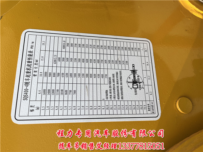 陜汽德龍前四后八隨車吊配徐工16噸G系1吊機參數(shù):起升質量16噸在2.5米距離,起重矩43.2,安裝空間1.4米,回轉角度360度全回轉,液壓油箱容積260升,大臂全申18.5米處吊1噸,15米處吊1.5噸,在12米外吊2.5噸,在7米外吊5噸,在3米處吊14噸。