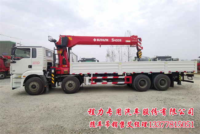 宏昌天馬16噸陜汽前四后八隨車吊底盤配置:400馬力濰柴,12檔箱陜齒,7.5噸16噸前后橋,帶空調(diào)原廠,1200的鋼絲胎,車廂做到8米多一點,宏昌天馬16噸(S4005)五節(jié)臂,雙級前支腿,超大跨距防側(cè)翻;雙回轉(zhuǎn)減速機,回轉(zhuǎn)鏗鏘有力;二節(jié)臂單出,吊載能力強悍;雙拉鎖式伸縮臂繩,不易受損;標配柱塞泵,上車啟停熄火,溫控散熱器,超長工作半徑19.6米。