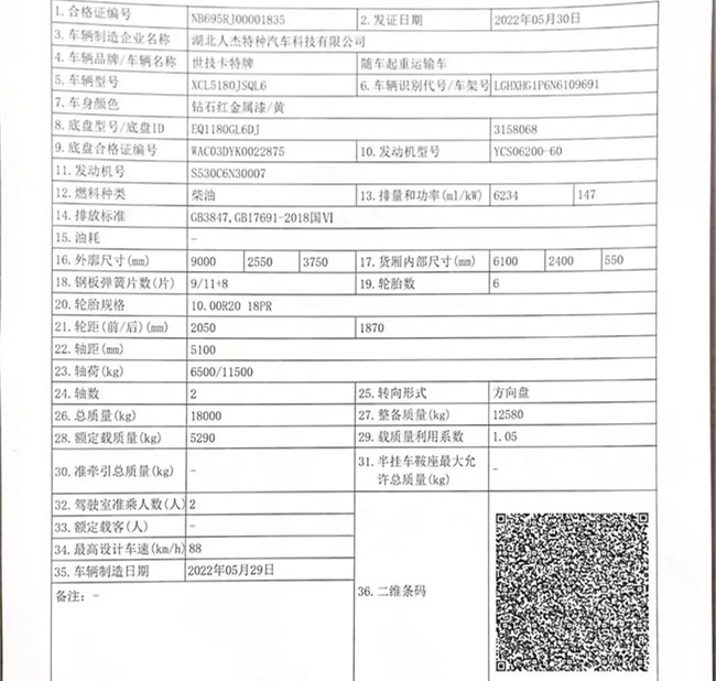 徐工8噸五節(jié)隨車吊DV5單排隨車吊的配置:玉柴六缸國六排放發(fā)動機220馬力,帶倒車影像,7 英寸液晶儀表盤,帶氣囊座椅、遙控中控六鎖,帶行駛記錄儀, 原廠自動空調(diào), 電動調(diào)節(jié)一體式后視鏡,10.00R20鋼絲胎。5100mm 軸距,陜齒小8檔變速箱、取力器,前橋 5.5 噸后橋10噸加強,300mm 直通三層車架,帶連接板,貨廂6.1米,自重12.88噸,在合格證范圍內(nèi)。
