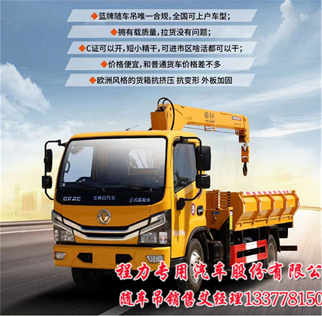 東風(fēng)多利卡D6藍(lán)牌隨車吊上裝長興4噸3節(jié)直臂吊機(jī),舉升高度9.5米,工作半徑7.5米。上裝長興4噸4節(jié)直臂吊機(jī),舉升高度12米,工作半徑10米。這款車子出廠都是整車,一切手續(xù)按公告手產(chǎn),
