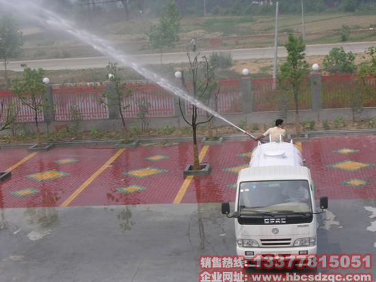 前沖(噴)后灑,帶側(cè)噴,罐體后帶工作平臺,平臺上安裝綠化灑水炮,灑水炮可全方位旋轉(zhuǎn),可連續(xù)調(diào)成直沖狀、大雨、小雨、毛毛雨,帶安全護(hù)欄,配備全國質(zhì)量評比第一名的杭州威龍大功率專用灑水泵,泵可自吸自排,安裝過濾網(wǎng),帶消防接口,可通過消防栓進(jìn)水,帶自流閥,隨車選裝20米綠化卷盤,可噴灑農(nóng)藥,罐體金屬漆。