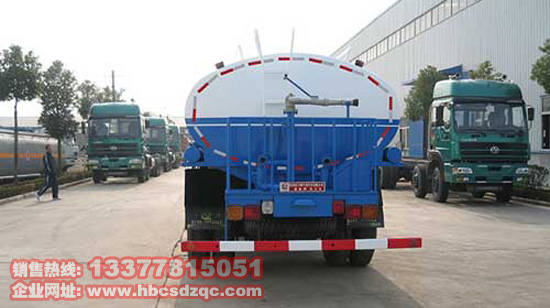 ★ 隨車吊灑水車專用功能:配置3噸3節(jié)直臂伸縮式吊機,最大起重質量3噸,最大作業(yè)半徑7.5米,最大舉伸高度9.3米,吊臂前安裝工作斗,貨箱內安裝8噸灑水罐,帶側噴,帶后工作平臺,帶灑水炮。該車以隨車起重運輸車上戶。 ★ 所有灑水車同時具有運水功能,灑水車泵可起到吸水和加壓排水功能,也可不通過泵就排水。灑水車也可做噴藥車使用,專業(yè)噴藥車用戶請?zhí)崆案嬷允刮覀冞M行專業(yè)的噴藥防腐處理。 ★ 對灑水車有特殊要求的用戶請?zhí)崆案嬷究蔀橛脩籼峁┘友b各種附件的工作,如加裝藥盤、氣動閥、高壓噴藥設備、非車泵動力等。
