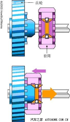 ★.同步是使得套筒上的齒和齒輪(藍(lán)色)嚙合之前產(chǎn)生一個(gè)摩擦接觸,見(jiàn)下圖