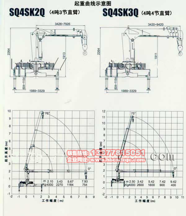 SQ4SK2Q噸三節(jié)直臂吊機(jī)(舉升高度8.8米 ,工作半徑7.7米) 最大起重量是4T,最小起重量是0.75噸。 SQ4SK3Q噸三節(jié)折臂吊機(jī)(舉升高度9.8米 ,工作半徑7.2米) 最大起重量是4T,最小起重量是0.4噸 SQ4ZK2 三節(jié)折臂吊機(jī)(舉升高度10.9米 ,工作半徑7.4米) 最大起重量是4T,最小起重量是0.92噸,齒條缸 圖片: