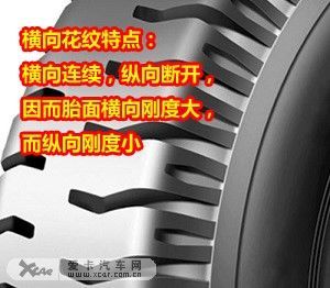 這種花紋的特性是胎面橫向連續(xù),縱向斷開,因此胎面橫向剛度大,而縱向剛度小。故輪胎抗滑才能呈現(xiàn)出縱強(qiáng)而橫弱,汽車以較高速度轉(zhuǎn)向時,容易側(cè)滑;輪胎滾動阻力也比較大,胎面磨損比擬嚴(yán)重。這種型式花紋合適于在普通硬路面上、牽引力比擬大的中型或重型貨車運用。