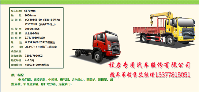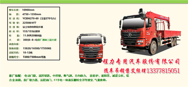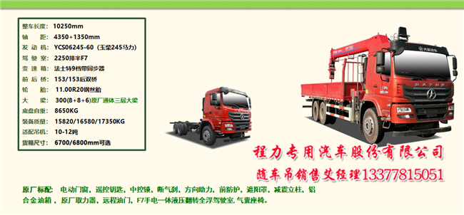 5噸至14噸大運隨車吊系列產(chǎn)品,不同軸距,不同貨廂,不同發(fā)動機(jī),有兩款特殊車型提升橋最大優(yōu)點是自重輕,拉貨多,配吊機(jī)大和短軸距后雙橋隨車吊車廂短到6.7米,